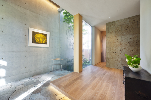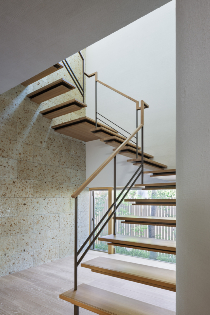 中庭 / 造作玄関扉 / 鉄骨階段
